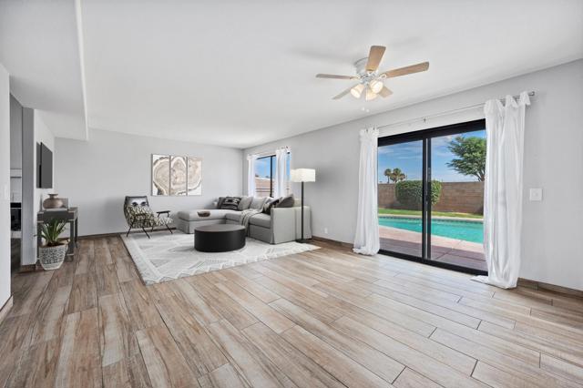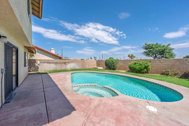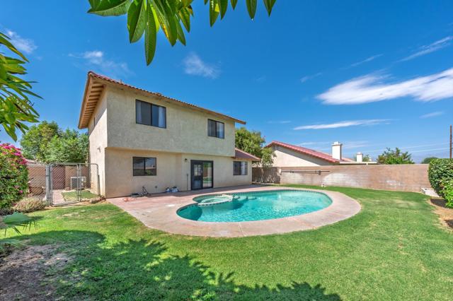Wonderful pool home in Indio! Perfect as a primary residence or short-term rental! (STRs permitted by the City of Indio)This two-story residence offers a bright, open layout with wood-look tile flooring, a formal living room with fireplace, and a separate family room ideal for relaxing or movie nights. The kitchen features stainless steel appliances, a breakfast bar, and dining area that flows easily for everyday living or entertaining.Upstairs includes three bedrooms, highlighted by a spacious primary suite with dual sinks, walk-in closet, and shower/tub combination.Step out back and enjoy a large yard with a sparkling pool and spa... just waiting to be transformed into your private desert retreat!! Additional highlights include a 2-car garage, a great location near schools, shopping, and restaurants! PLUS no HOA!Interested in rental potential? Buyers may inquire with the City of Indio about obtaining a short-term rental permit!A great opportunity at a great price... don't miss this one!*All furnishings have been virtually staged.*