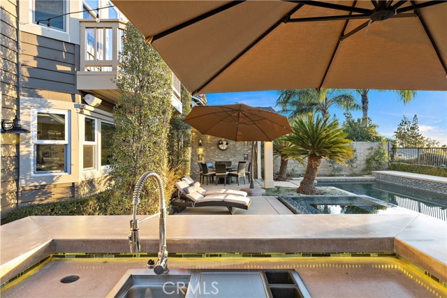 Experience elevated living and exceptional entertaining in this beautifully upgraded home on a quiet single-loaded cul-de-sac in the prestigious guard-gated Canyon Crest Estates of Mission Viejo. Enjoy breathtaking city lights views and front-row views of Mission Viejo’s Independence Day fireworks, all just moments from the clubhouse and resort-style amenities including pools, spa, sauna, tennis, pickleball, fitness center, playgrounds, BBQ and picnic areas, with 24-hour guard-gated security and roving patrol. Designed with quality and comfort in mind, the home showcases a remodeled chef’s kitchen featuring premium Thermador appliances including a double convection oven, five-burner gas cooktop and dishwasher, complemented by under-cabinet LED lighting and Hunter Douglas electric shades. Additional highlights include dual and triple-pane Milgard windows and doors, in-wall JBL surround sound, and zoned HVAC with separate upstairs and downstairs thermostats and three remote controls. All three bathrooms have been stylishly remodeled with updated fixtures and finishes. The spacious primary suite offers remote-controlled Hunter Douglas shades and access to a private deck finished with a durable waterproofing system. The backyard is a true private resort, featuring a PebbleTec saltwater pool and spa with therapeutic jets, Pentair heating system and variable speed pump. The outdoor kitchen is fully equipped with a 32” Bull BBQ with rotisserie, griddle, dual burners, refrigerator, and sink with hot and cold water. Multiple covered entertaining areas include radiant heaters, a fireplace, and a large gathering structure for year-round enjoyment. Additional highlights include a brand new roof, fresh exterior paint, whole-house PEX repipe, drip irrigation, LED landscape lighting, garage storage, attic access, and a game room with refrigerated beverage drawers. Lake Mission Viejo membership enhances the lifestyle with access to boating, paddleboarding, seasonal events, and summer concerts. Ideally located near premier shopping, highly regarded schools, and convenient access to the 5 Freeway and 241 Toll Road, this exceptional residence offers the best of Southern California living.