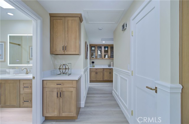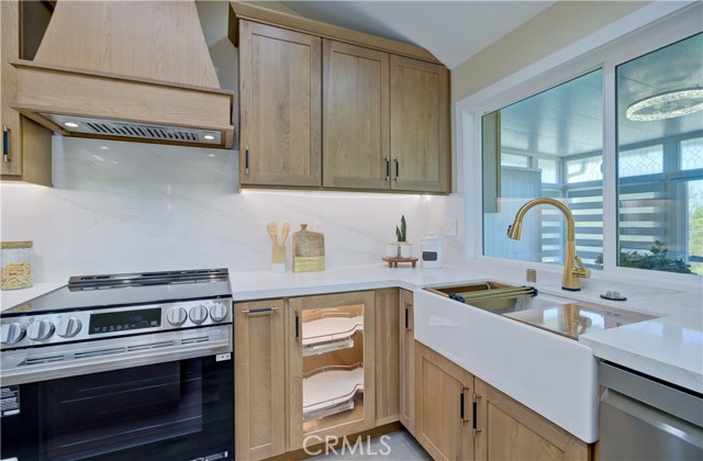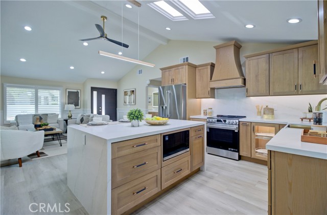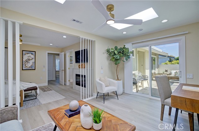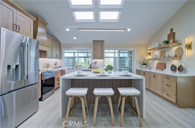ALL NEW! ALL BRAND NEW! 3BED and 2BATH with top brand of all New appliances with VIEW and VIEW Experience the ultimate in elevated retirement living in this rare, expanded 'La Reina' end-unit, a step-free masterpiece featuring dual fireplaces, a massive chef’s island with a VIEW, and high-end modern upgrades including a 220V EV-ready, 2 car garage with EPOXY FLOORS. Your retirement lifestyle through every detail. This home is thoughtfully upgraded for a seamless, high-end experience. To complete the ultimate self-care routine, a premium whole-home WATER SOFTENING SYSTEM ensures every drop of water is gentle on your skin and home. Enjoy the VIEW from the kitchen and back enclosed patio with WINE COOLER. Step inside and you'll be welcomed by a spacious living room and separated primary master with private bathroom ,walking closet and a very private fire place for your special taste. TWO FIREPLACES and 3BED and 2BATH! Kitchen Features all brand new Stainless Steel Appliances with amazing size of ISLAND creating a delightful space for meal preparation and hosting gatherings. The home showcases natural color of laminate flooring throughout, Offering comfortable feel, the most modern style of bathrooms and kitchen. This home offers a luxury life style of your retirement. Living in Laguna Woods Village provides a multitude of exceptional amenities that cater to an active and vibrant lifestyle. Enjoy access to a 27-Hole Golf Course, Perfect for golf enthusiasts looking to indulge in their favorite Sport. engage in friendly competition on the pickleball and tennis courts. The community boasts 7 Clubhouses, where you can participate in a variety of recreational activities. Clubhouse 4 stands out, hosting amazing classes in art, ceramics, woodshop, jewelry-making, and sewing, fostering creativity and personal growth. With its proximity to Laguna Beach, You'll have easy access to stunning coastal scenery and the vibrant beach culture. Laguna Woods Village is a close-knit and welcoming community, offering numerous clubs and interest groups catering to a wide range of hobbies and interests. Whether You're looking to socialize, stay active, or explore new passions, this community provides a fulfilling and enriching lifestyle. Professional photo will be on Friday or Saturday.