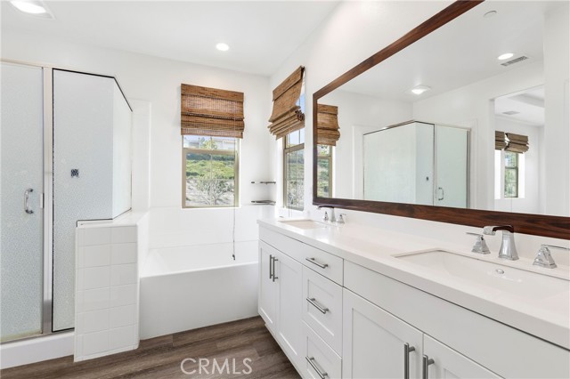 Welcome home to this wonderfully upgraded corner unit 3 bedroom, 2 1/2 bath home with nobody behind you. Step right in and immediately notice the great open floor plan highlighted with updated laminate flooring, new paint throughout, custom window coverings and quartz countertops in the kitchen. The kitchen area offers a lovely island to entertain around with plenty of storage in the white shaker style cabinets highlighted with stainless steel appliances and glass backsplash. Step out into your private easy to maintain patio perfect for entertaining and enjoying the indoor/ outdoor California lifestyle. Upstairs you will find the large primary bedroom with on suite bathroom boasting a dual vanity with quartz countertops, walk in closet, soaking tub, step in shower, private toilet area and great views from all the windows. The two additional bedrooms are a great size and share a private Jack and Jill bathroom. Enjoy the laundry area complete with a soaking sink and located upstairs for easy access. Garage area offers a generous amount of storage and epoxy flooring with an energy rated tank-less water heater. Enjoy everything this home has to offer including the wonderful Rancho Mission Viejo Lifestyle which includes award winning schools, the Rancho Cove community pool and gym, The Ranch Camp, countless recreational activities, countless resort style pools and spas, fitness centers, putting greens, pickle ball courts, playgrounds, arcade area, sports courts, you name it!! This is a MUST SEE!!!