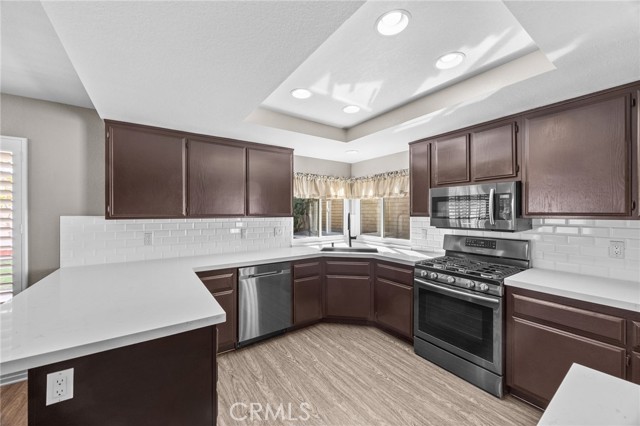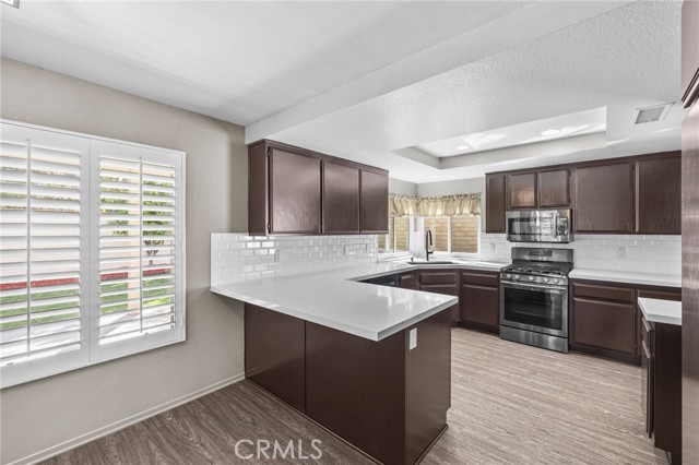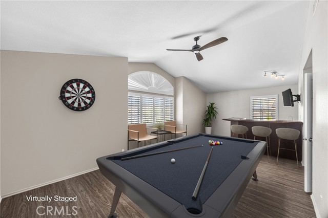 Welcome to this beautifully maintained turnkey home offering 4 bedrooms, 3 full bathrooms, and 2,603 sq. ft. of thoughtfully designed living space. From the moment you step inside, you’ll appreciate the open and airy feel created by vaulted ceilings and an abundance of natural light. The spacious primary suite serves as a private retreat, featuring vaulted ceilings, two walk-in closets, and a well-appointed en-suite bathroom complete with a separate soaking tub and walk-in shower. Upstairs, you’ll find an additional full bathroom with dual sinks and a tub/shower combination, ideal for family or guests. Designed for both comfort and entertaining, the home offers a generous family room, a separate formal dining area, and a large living room with vaulted ceilings. The kitchen is upgraded with quartz countertops, subway tile backsplash, and ample cabinetry, providing both style and functionality. A standout feature is the bonus/game room with a wet bar, perfect for entertaining or creating a customized space to fit your lifestyle. Step outside to a covered patio and beautifully landscaped backyard with fruit trees, offering a relaxing setting for outdoor enjoyment. Conveniently located near hiking trails, shopping, dining, and freeway access, this home combines comfort, space, and location—making it an exceptional opportunity you won’t want to miss.