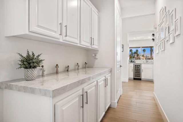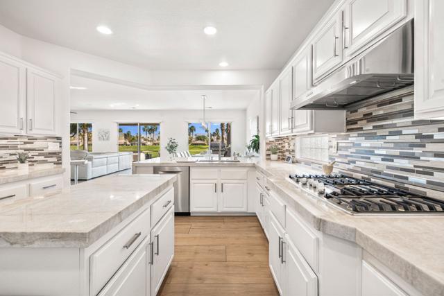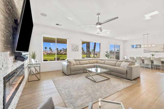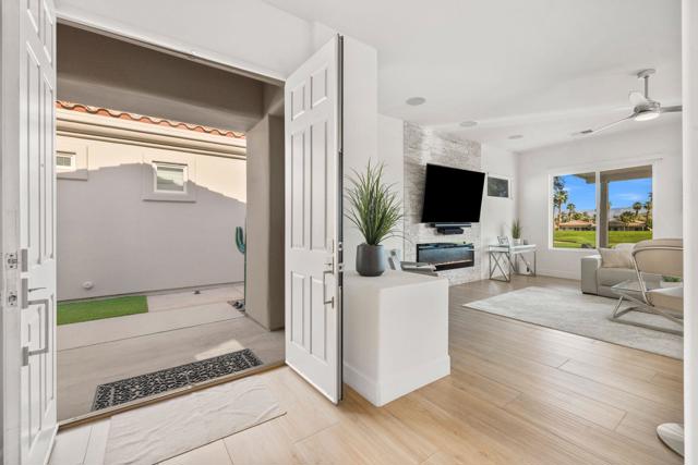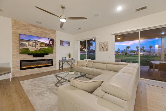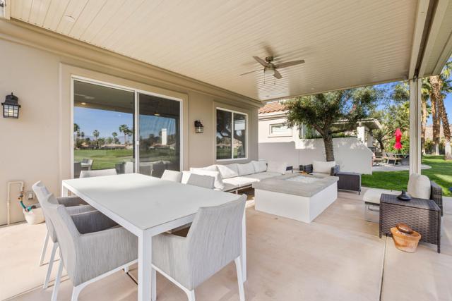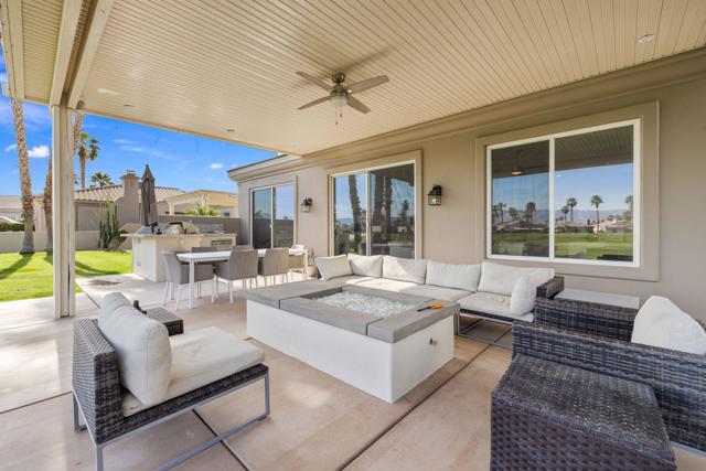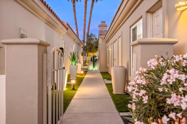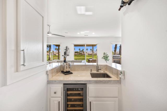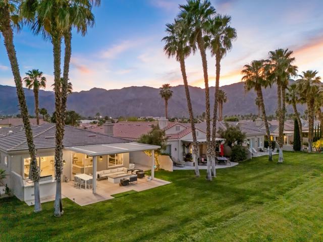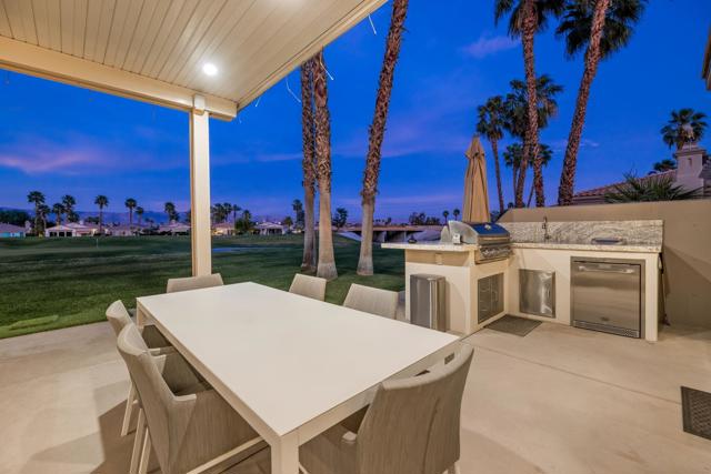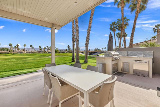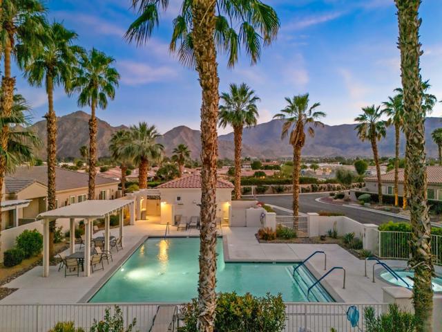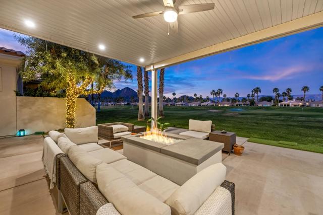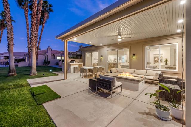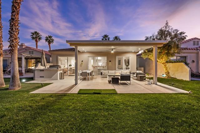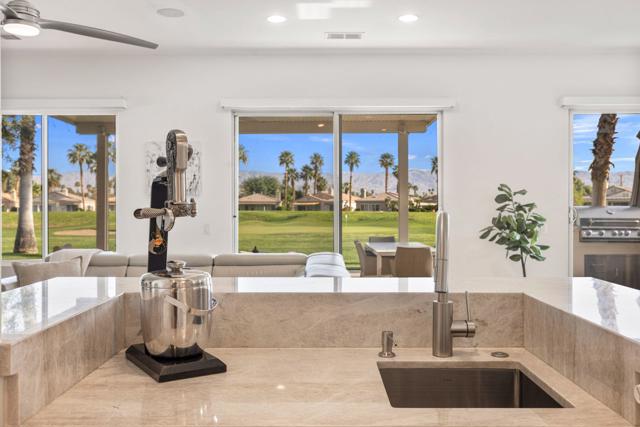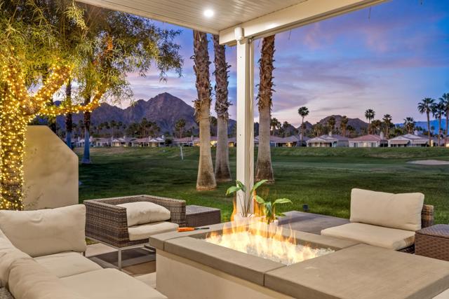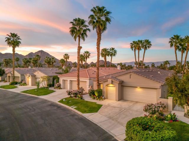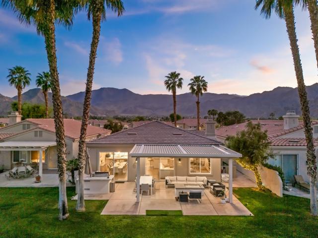 Welcome to Duna La Quinta, a beautifully UPDATED desert retreat ideally located in the heart of La Quinta and within walking distance to Old Town La Quinta and the iconic La Quinta Resort. Perfectly positioned on the 4th green of the La Quinta Dunes Course, this stunning 3 bedroom, 3 bath home with an attached PRIVATE CASITA offers spectacular mountain views and breathtaking desert sunrises and sunsets from the back patio.This bright and inviting home features a spacious great room floor plan designed for both comfortable living and effortless entertaining. The living area includes a wet bar and expansive windows that showcase the surrounding mountains and golf course views.The REMODELED kitchen features quartzite Taj Mahal countertops, refreshed cabinetry, stainless steel appliances (2022), a gas cooktop, double ovens, and a large pantry, creating a beautiful and functional space for cooking and gathering.The luxurious primary suite has been extensively remodeled and offers a spa-like retreat with a stunning walk-in shower, freestanding soaking tub, double vanities with custom quartzite Taj Mahal countertops, and an oversized walk-in closet. HEATED FLOORING in both the primary bedroom and bathroom adds comfort and elegance.Guests will appreciate the attached casita, which has its own PRIVATE entrance, breakfast bar, and brand new mini refrigerator, making it perfect for visitors, extended family, or a private workspace.Recent upgrades include porcelain wood-look tile flooring throughout the home (2022), fresh interior paint and Custom motorized Shades. The landscaping has also been completely refreshed with low-maintenance artificial turf. The backyard is ideal for relaxing or entertaining, featuring incredible mountain views, a custom FIRE PIT, an amazing OUTDOOR KITCHEN with a BBQ and a refrigerator and a covered Alumawood patio.The low HOA of $582 per month includes exceptional services such as weekly street sweeping, full gardening service, annual palm tree trimming, seasonal flower replacement in the front yard, annual stucco repair, cable, Wi-Fi, and a responsive HOA.This is a wonderful opportunity to enjoy luxury, convenience, and low-maintenance living in one of La Quinta's most desirable communities. Schedule your private showing today.