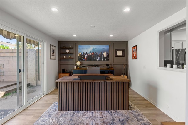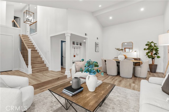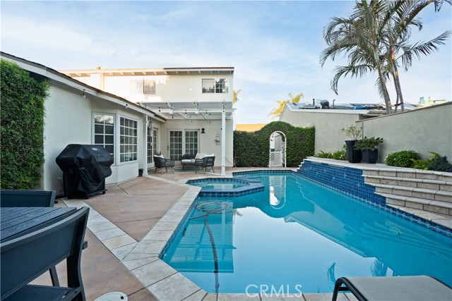 Located on a beautiful interior street in the desirable Century Park neighborhood, this fully upgraded turnkey home offers clean design and effortless indoor-outdoor living. A charming Dutch door opens to a light-filled interior with vaulted ceilings, new luxury vinyl flooring, custom built-ins, and recessed lighting throughout. Upon entry, the open layout includes a welcoming family room, dining area, and remodeled first-floor bathroom. The kitchen features an exposed wood beam ceiling, granite countertops, stainless steel appliances, and opens directly to the main living spaces. Large sliding doors create a seamless connection to the backyard from the main living areas, while the office also opens to a private side yard Trex deck for an additional outdoor area. The main-level primary suite includes direct backyard access and a remodeled en-suite bath with an expanded walk-in shower and smart toilet. Upstairs, you’ll find three secondary bedrooms and a remodeled hall bathroom. Custom closets in the primary and secondary bedrooms provide upgraded storage. The backyard is designed for both entertaining and everyday enjoyment, complete with a pool, spa, multiple seating areas, and mature landscaping for added privacy. Exterior improvements include fresh paint, an Ipe wood front fence, new landscaping with irrigation, updated driveway and pavers, and upgraded front and garage doors. The home also includes upgraded A/C and additional system improvements. Ideally located in Fountain Valley, just minutes from Huntington Beach, top-rated schools, shopping, and dining.