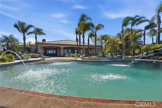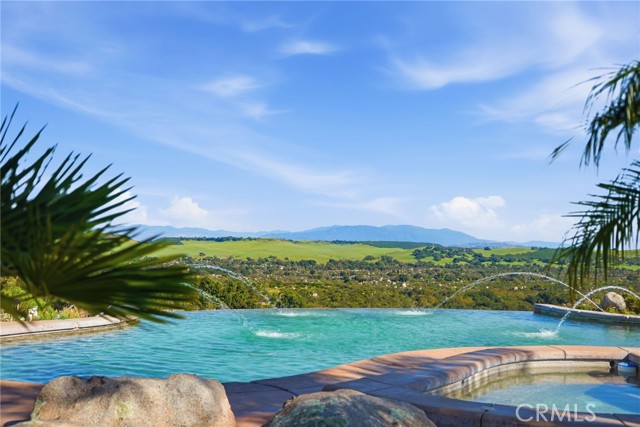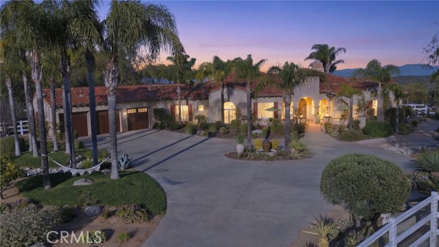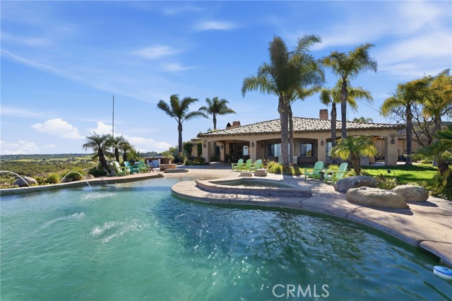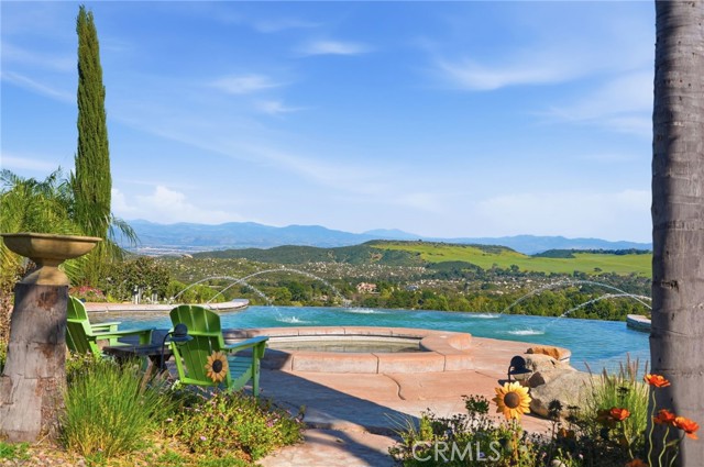 Perched atop a hill in the prestigious La Cresta community, 21715 The Trails Circle offers breathtaking, unobstructed views that truly set this property apart. Situated on 6 full acres, this exceptional estate delivers the privacy, space, and serenity of your own private Tuscan-style resort—just minutes from town. Ideally located near the community entrance and bus stop, this home provides both convenience and exclusivity. Designed with an open-concept layout, the residence features a seamless flow from room to room, creating an inviting and highly functional living space. The expansive kitchen opens effortlessly to the main living areas and is anchored by an oversized island—perfect for entertaining, gathering, and everyday living. Step outside to your resort-style backyard, where a tranquil courtyard with fireplace, gazebo, play area, fire pit, and stunning infinity pool come together to create the ultimate indoor-outdoor experience—all perfectly positioned to capture the sweeping panoramic views. Additional highlights include 40 solar panels for energy efficiency, a 3-car garage, and ample space for RV parking. The grounds are adorned with mature fruit trees, while the expansive lot offers endless potential for future expansion or the addition of a guest house or mother-in-law suite. This is a rare opportunity to own a one-of-a-kind estate that blends luxury, privacy, and lifestyle in one of Murrieta’s most sought-after communities.
