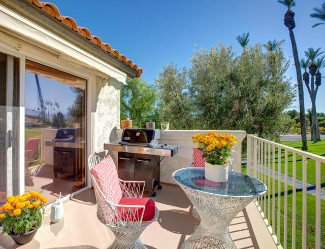 STUNNING is what best describes this Special Home!! With breathtaking views throughout you are mesmerized by the views from every room. The Chocolate Mountains from the North and the Sant Rosas & San Jacinto to the South/West. This rare, upstairs end unit offers unobstructed views from all rooms is hard to find. This lovely home offers a remodeled kitchen with granite counters, plank tile flooring, cabinets and ceramic tile throughout main area. New high-quality bedding and mattresses, all new fixtures in bathrooms, newer Berber carpet in the bedrooms, all freshly painted with a designer's touch. The HVAC has recently been replaced. New Hot Water Furnace in 2024. Desert Falls Country Club is a highly desirable club that offers a resort lifestyle. Links-style golf course, State of the Art Health & Fitness Center, tennis, pickle ball and bocce ball. Nearby shopping on El Paseo, fine Restaurants, McCallum Theatre, art galleries, The Living Desert, and numerous hikes throughout our beautiful desert. Centrally located to Los Angeles, San Diego, and Big Bear a perfect getaway with family and friends! Investors this is for you too! Short Term Rentals are permitted in the Villas. Call today for a private tour.
