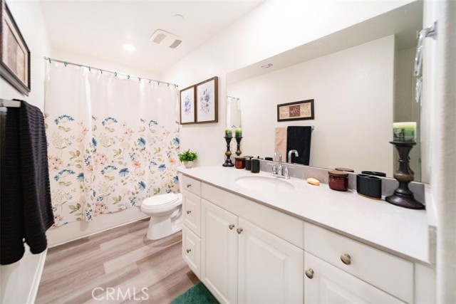 Beautiful 2021 turnkey single story 4 bedroom home in Menifee! Over 2,000 sqft, open floor plan, beautiful kitchen with plenty of cabinet space and a large center island, stainless steel appliances, the kitchen opens to an extra large living area, All bedrooms are spacious, separate shower & tub, double sinks, and a walk-in closet in the master bedroom. Laminate flooring in main areas, brand new neutral color carpet in bedrooms. Very private backyard, with plenty of room, large patio area, terraced - area ideal for planting, beautiful front yard landscaping with artificial turf. Energy efficient home with a low SOLAR monthly payment as well as a soft water system. This home shows a lot of pride of ownership!