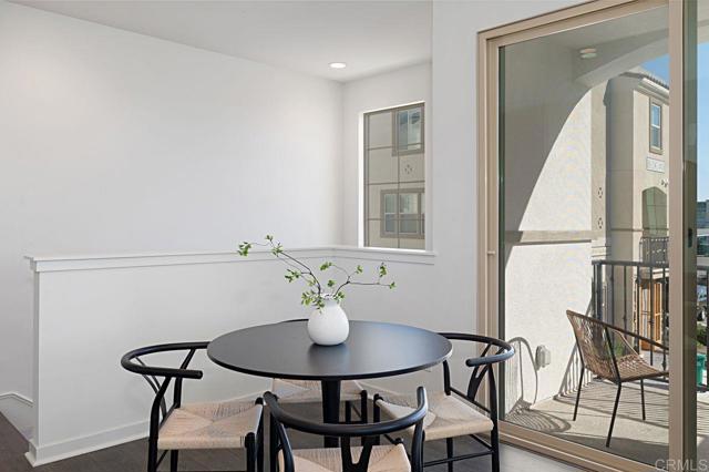 Elevated, refined, and designed for modern living, this exceptional three-level residence offers approximately 1,500 square feet of thoughtfully curated living space in one of Riverview’s most desirable end-unit locations. Showcasing a rare blend of privacy and panoramic beauty, the home captures sweeping, unobstructed views of the city and surrounding mountains from virtually every window. Built just three years ago, the property reflects a contemporary aesthetic paired with quality craftsmanship and energy-efficient systems, delivering both style and peace of mind. The versatile floor plan features three spacious bedrooms, two full bathrooms, and two powder rooms, perfectly balancing functionality with comfort. The main living level is warm and inviting, highlighted by wide-plank grey laminate flooring and an open-concept design ideal for both everyday living and entertaining. The kitchen is beautifully appointed with sleek quartz countertops, a center island, crisp white cabinetry, and a full suite of stainless steel appliances. An adjacent dining area seamlessly extends to the outdoor patio—perfect for entertaining and hosting sunset gatherings against a stunning mountain backdrop. A stylish powder room and convenient laundry closet with a stackable washer and dryer complete this level. Privately situated on the top floor, the primary suite offers a spacious tranquil retreat with abundant natural light, and tiled en-suite bath. Two additional bedrooms provide flexibility for guests, a home office, or growing households, and share a beautifully maintained full bathroom. The ground level welcomes you with a thoughtfully designed entry, featuring a functional mudroom space, an additional powder room, and direct access to the attached two-car garage with ample storage. Located within the highly sought-after Riverview community in Santee, residents enjoy resort-style amenities including a sparkling pool, scenic walking and hiking trails, and close proximity to parks and open space. The home is ideally positioned near shopping, dining, major freeways, and trolley access, offering a seamless connection to downtown San Diego and beyond. This is a rare opportunity to own a sophisticated, move-in-ready home in one of Santee’s premier communities—where elevated design meets everyday convenience.