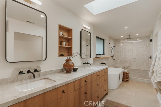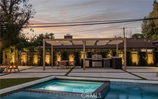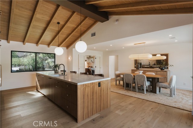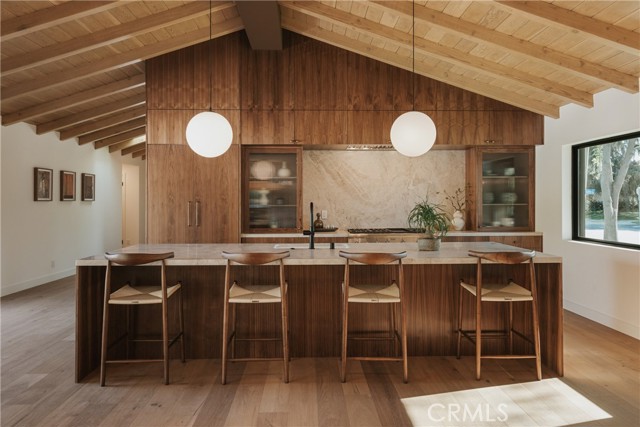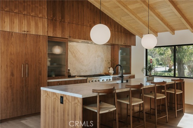 Set on an oversized 15,891 square foot corner lot along a picturesque, tree-lined street in the coveted Park Estates neighborhood of Long Beach, 5401 E El Parque Street blends timeless architecture with a thoughtful, design-forward renovation. Completely reimagined for modern living, this expansive property offers a rare combination of space, style, and versatility with a beautifully updated main residence and a fully equipped ADU. The main home spans approximately 3,066 square feet with four bedrooms, three bathrooms, a fireplace, and an attached three-car garage. Interiors are anchored by Chêne engineered wood flooring throughout and a warm, curated palette featuring Sherwin Williams Westhighland White walls, limewash accents, and designer lighting selections that elevate every space. The living room is centered around a statement fireplace clad in Bedrosians matte porcelain tile and complemented by sculptural lighting and custom finishes. At the heart of the home, the chef’s kitchen pairs custom stain-grade cabinetry with stunning Taj Mahal quartzite countertops, statement pendant lighting, and a beautifully appointed butler’s pantry finished with Walker Zanger crackle tile and matching quartzite surfaces. The adjacent laundry and mudroom feature custom cabinetry, designer lighting, and durable finishes designed for everyday functionality. Bathrooms throughout the home showcase elevated material selections, including Calacatta Valentin countertops, Bedrosians porcelain and slate flooring, and curated lighting from Shades of Light and Crate & Barrel. The primary suite serves as a private retreat, highlighted by handcrafted glossy zellige shower tile, large-format porcelain flooring, and custom cabinetry in the spa-inspired bath. Adding exceptional flexibility, the detached ADU offers approximately 616 square feet with one bedroom, one bathroom, central air conditioning, and in-unit laundry—ideal for guests, extended family, or income potential. Residents of Park Estates enjoy wide lots, beautiful tree-lined streets, nearby parks, and access to excellent schools, all while being just minutes from shopping, dining, and coastal amenities. This is a rare opportunity to own a turnkey property on one of the neighborhood’s most desirable parcels.