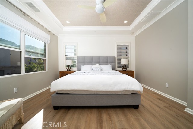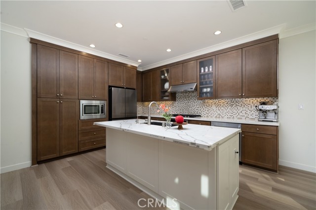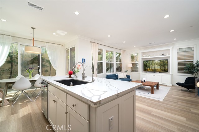 Rare opportunity to own a former MODEL HOME in the highly sought-after Vista Scena community of Orchard Hills. Ideally positioned as a premium end unit and only attached at the garage, this home offers a rare single-loaded feel with no neighbors in front and serene views of a lush greenery and beautiful sunset. Spanning approximately 1,772 sq ft, this 3-bedroom, 2.5-bath home with loft features a bright, open-concept layout and extensive builder upgrades throughout. The gourmet kitchen showcases upgraded countertops, mosaic backsplash, stainless steel appliances, custom cabinetry, and a large center island—ideal for both everyday living and entertaining. The garage has sufficient space not only to store your Christmas decoration and cars but also has a 240V EV charger to ease anyone's EV anxiety. Upstairs, the spacious primary suite features dual vanities, a jet-spa tub, separate shower, and a walk-in closet. Two additional bedrooms, a full bath, a versatile loft area ideal for a home office or workout space, and convenient upstairs laundry complete the second level. Enjoy breathtaking open-space views from the bedrooms—offering a rare sense of privacy and tranquility. The light-filled interior flows seamlessly to a professionally updated backyard, creating a private, low-maintenance retreat perfect for relaxing or entertaining. The nearby park and reservable clubhouse are close enough for everyday enjoyment, yet thoughtfully positioned to preserve peace and quiet. Located within walking distance to Blue Ribbon Northwood High School and within a mile from award-winning Canyon View Elementary. This house is also just minutes from Irvine’s premier shopping, dining, and everyday conveniences. Former model homes in this location rarely come to market—this is one you don’t want to miss.