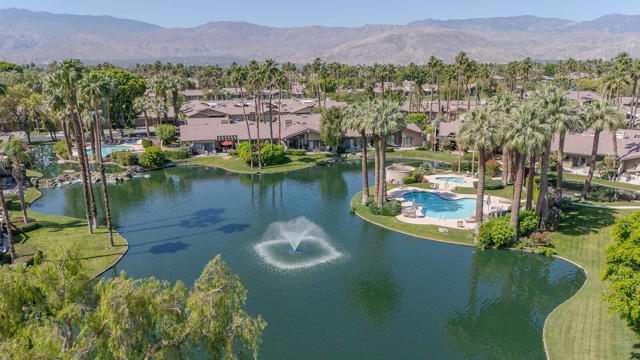 This stunning Laramie floor plan, which is one of the most popular in The Lakes Country Club. Facing south overlooking a lake with waterfalls and mountain views - all with privacy. 2 bedrooms/3.5 bathrooms, den (3rd bedroom) with en-suite, beautiful living room with volume ceilings and stunning fireplace. Newer AC unit and the home has been rarely used. This 2,184 square foot home is truly a jewel that offers a wonderful blend of comfort and style. The guest bedroom, with a stunning en-suite is spacious and private. The Primary bedroom, with large walk-in closet, beautiful en-suite tells you that you are truly living the desert lifestyle. The kitchen with views of the lake and patio is a chef's delight and perfect for entertaining family, friends and guest. The dining room is adjacent for easy conversations with friends who love the be with the chef. The living room is stupendous with such high ceilings and the feeling of warmth with gorgeous views of the outdoor patio, lake and mountains - this is a gem and a true find of perfect blend of balance of leisure, luxury and convenience in one of the desert's most sought after communities in the desert. Offered Furnished per seller inventory and comes with the golf cart. NwThe Lakes Country Club is truly a marvelous location with so much to take advantage of. Offering 27 holes of championship quality golf, 11 tennis courts, 9 pickleball courts, 4 paddle tennis courts, 44 pools/spa and one of the most amazing fitness work-out facilities in the desert. The clubhouse is magnificent, and the restaurants are the finest. This truly enchanting home is priced to sell with the furniture (as stated per seller inventory)and golf cart.Neither the listing agent nor brokerage guarantees the accuracy of square footage or details regarding the property's condition or features as provided by the Seller. Buyers are strongly encouraged to conduct their own independent investigation and obtain professional inspections to verify all information. Buyer to pay one time Reserve Fee $12,618.