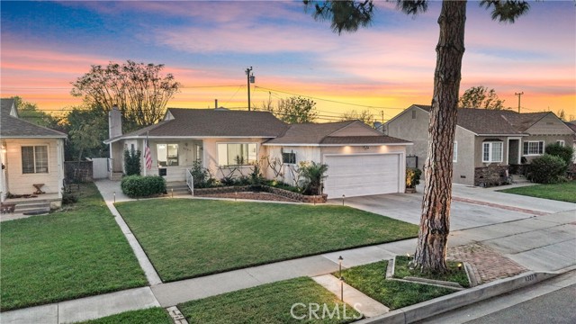 Situated on a spacious lot, this single-story residence offers inviting curb appeal with a generous front lawn, Spanish-style tile roof, and an extended driveway leading to a two-car garage.
